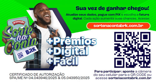 Nesta edição, além dos sorteios mensais, os participantes também concorrem a prêmios instantâneos por meio de uma roleta premiada. Para participar, o cliente titular – pessoa física ou jurídica responsável pela conta de água e esgoto – deve se cadastrar no site da promoção (sortenacontabrk.com.br) e aceitar os termos da campanha. A adesão garante o recebimento das faturas por e-mail, e a cada mês, o cliente pode acumular até três números da sorte: um por manter o recebimento digital da conta, outro por realizar o pagamento via PIX, e o terceiro por pagar dentro do prazo de vencimento, conforme consta no regulamento da campanha.